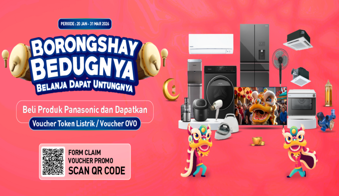 RP – Panasonic Indonesia kembali menghadirkan promo menarik bagi konsumen melalui program Borongshay All Product yang berlangsung sejak 20 Januari hingga 31 Maret 2026. Promo ini memberikan kesempatan bagi pembeli produk Panasonic bergaransi resmi untuk mendapatkan E-Money atau E-Voucher token listrik sebagai insentif langsung setiap kali melakukan pembelian. Program ini berlaku untuk seluruh produk Panasonic yang termasuk dalam daftar promo dan dibeli oleh konsumen perorangan.