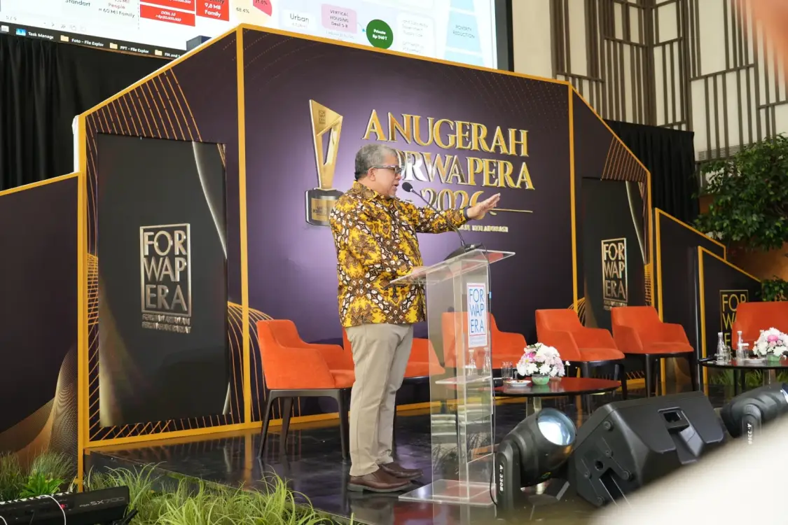 RP – Wakil Menteri Perumahan dan Kawasan Permukiman (PKP) Fahri Hamzah menekankan pentingnya penguatan data perumahan serta peningkatan kualitas hunian masyarakat saat menyampaikan keynote speech pada Anugerah Forwapera 2026 di The Hub Jakarta, Kamis (5/2/2026).